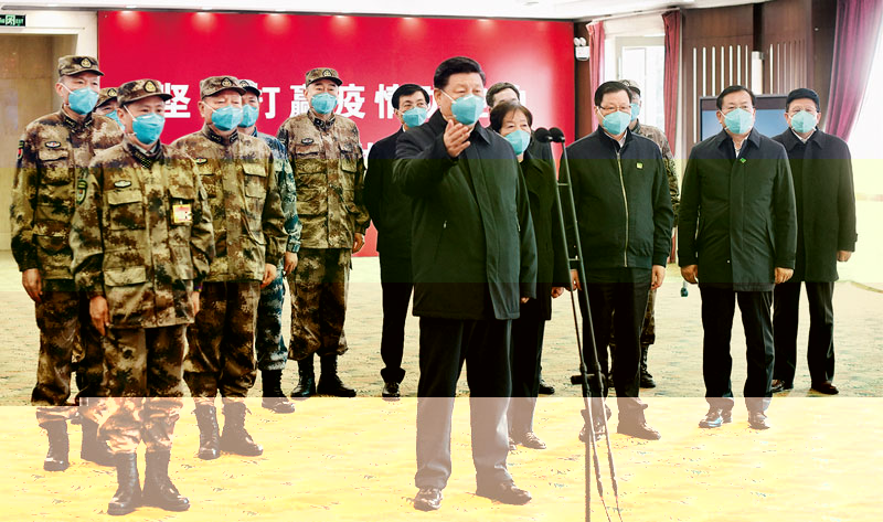 2020年3月2日,中共中央總書記、國家主席、中央軍委主席習近平在北京考察新冠肺炎防控科研攻關工作。這是習近平在清華大學醫學院全球健康與傳染病研究中心同科研人員交談。新華社記者 燕雁/攝